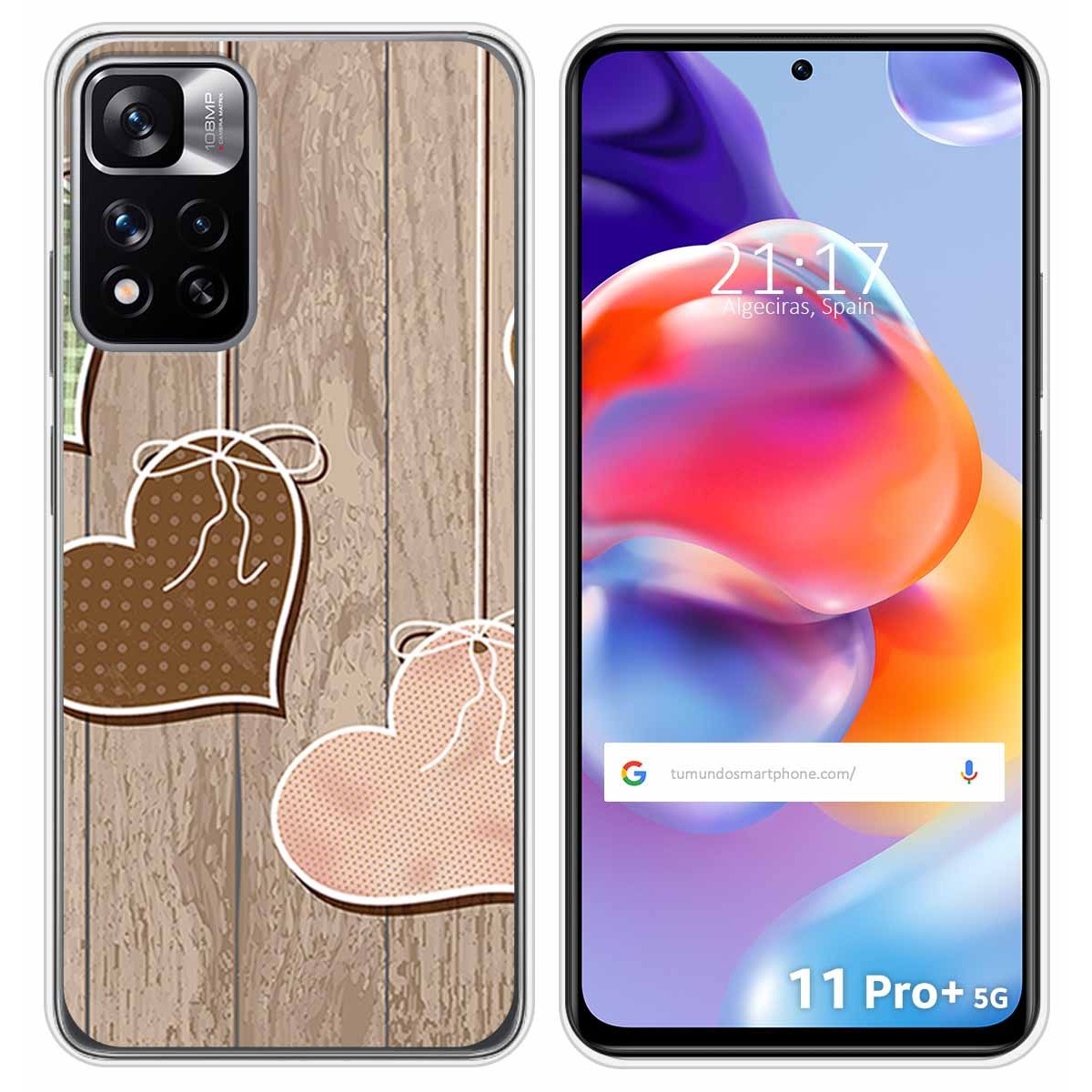 Funda Carcasa Protectora personalizada dibujo Corazones Madera de gel TPU para Xiaomi Redmi Note 11 Pro+ Plus 5G.
