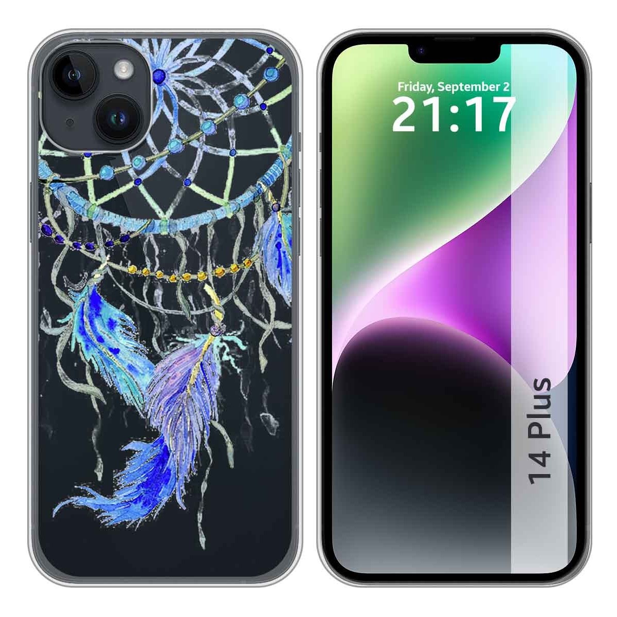 Funda Silicona Transparente compatible con iPhone 14 Plus (6.7) diseño Plumas Dibujos