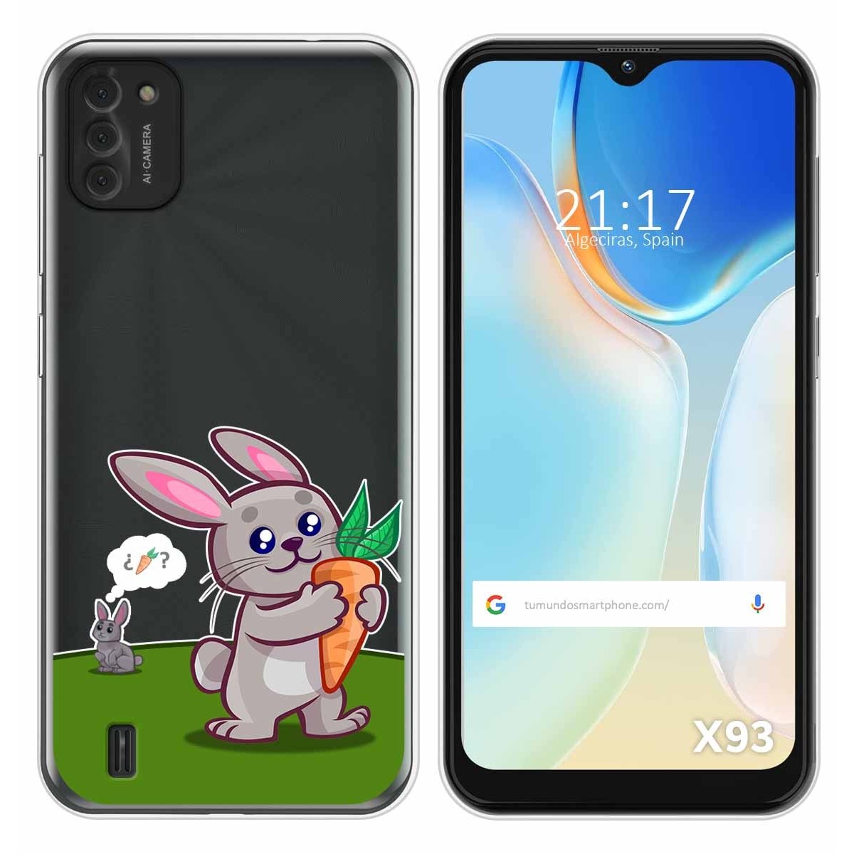 Funda Carcasa Protectora personalizada dibujo Conejo de gel TPU 100% transparente para Doogee X93.