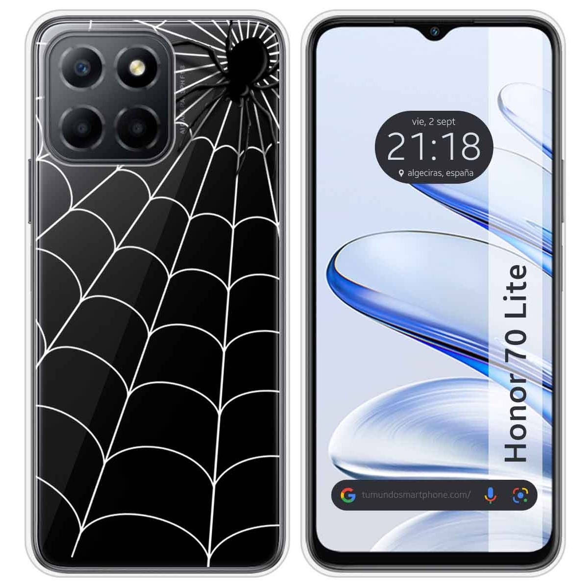 Funda Carcasa Protectora personalizada dibujo Araña de gel TPU 100% transparente para Huawei Honor 70 Lite 5G.
