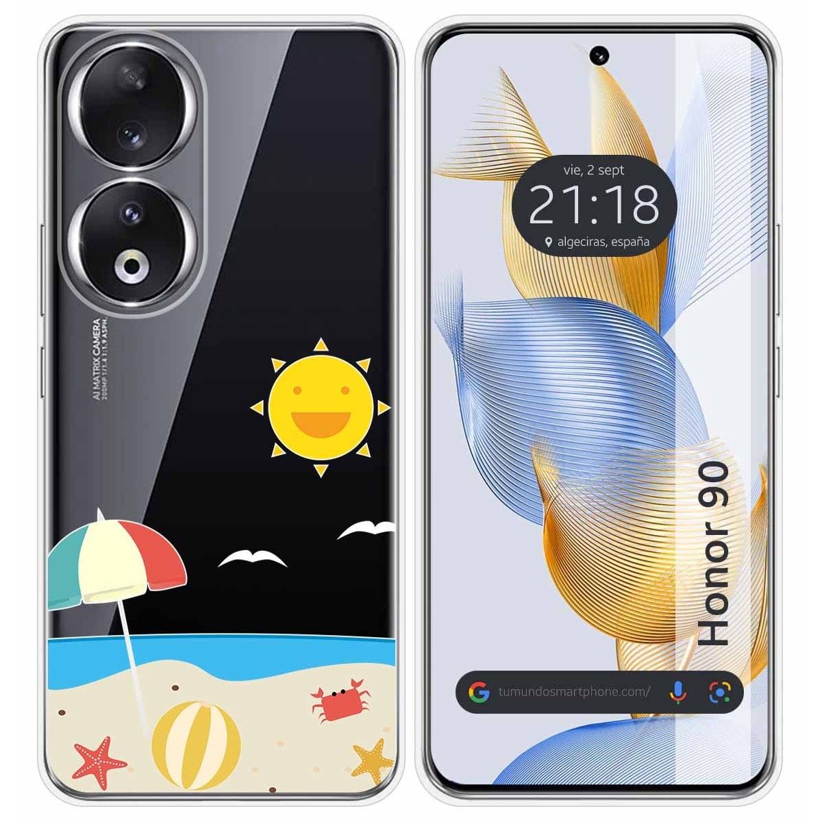 Funda Carcasa Protectora personalizada dibujo Playa de gel TPU 100% transparente para Huawei Honor 90 5G.