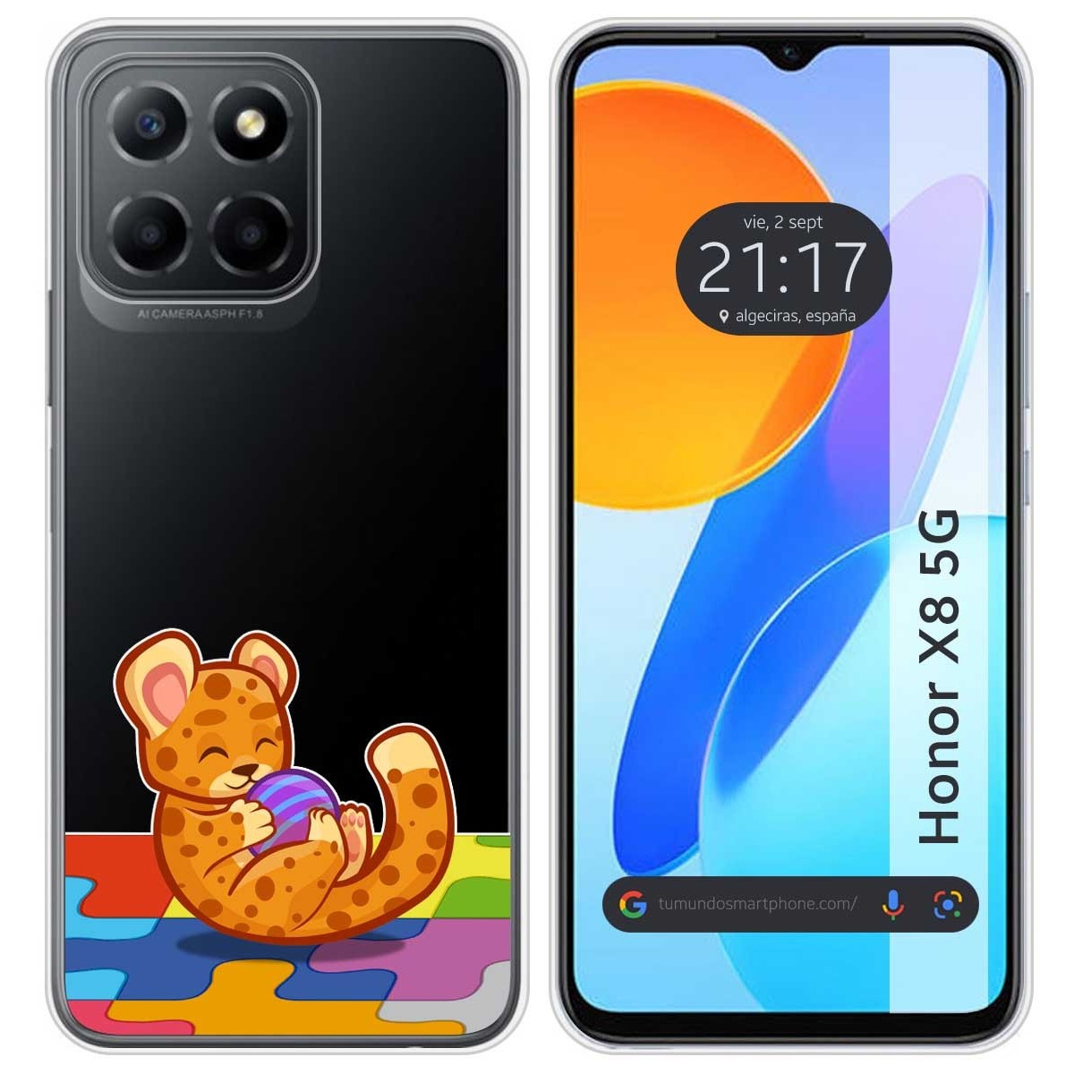 Funda Carcasa Protectora personalizada dibujo Leopardo de gel TPU 100% transparente para Huawei Honor X8 5G.