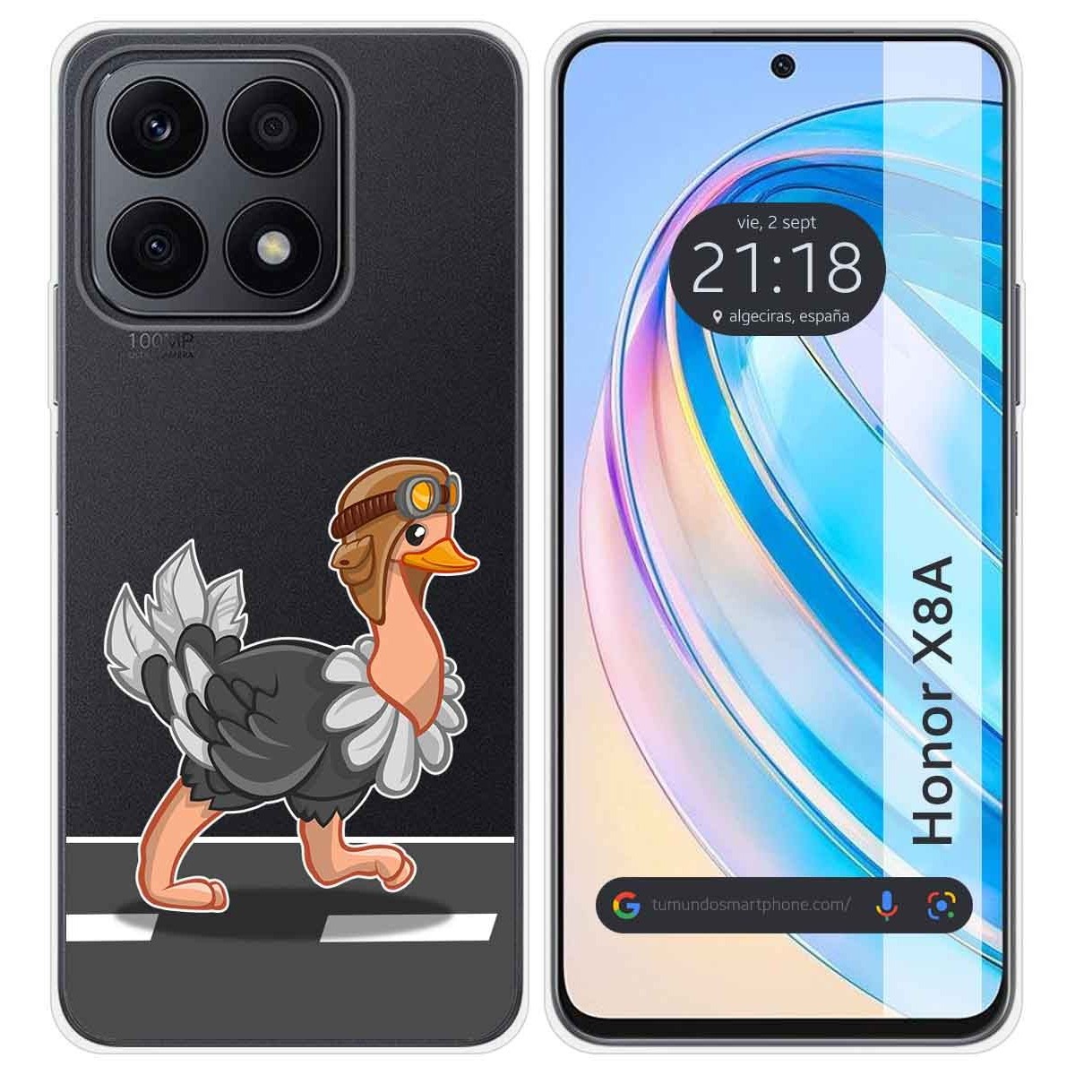 Funda Carcasa Protectora personalizada dibujo Avestruz de gel TPU 100% transparente para Huawei Honor X8a.