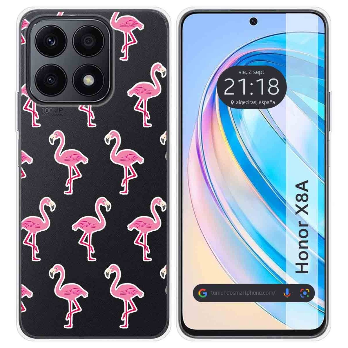 Funda Carcasa Protectora personalizada dibujo Flamenco de gel TPU 100% transparente para Huawei Honor X8a.