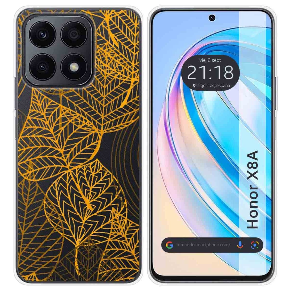 Funda Carcasa Protectora personalizada dibujo Hojas de gel TPU 100% transparente para Huawei Honor X8a.