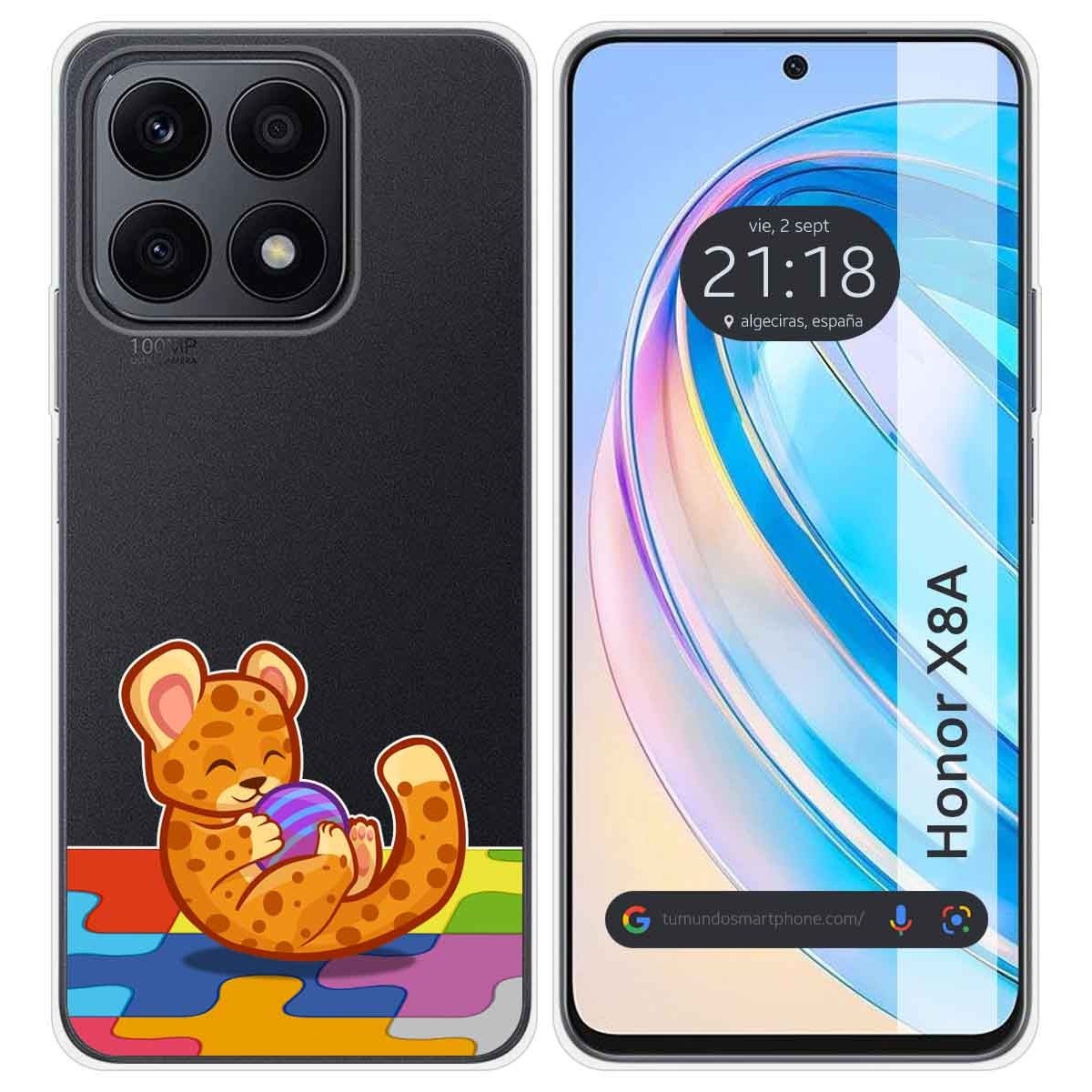 Funda Carcasa Protectora personalizada dibujo Leopardo de gel TPU 100% transparente para Huawei Honor X8a.