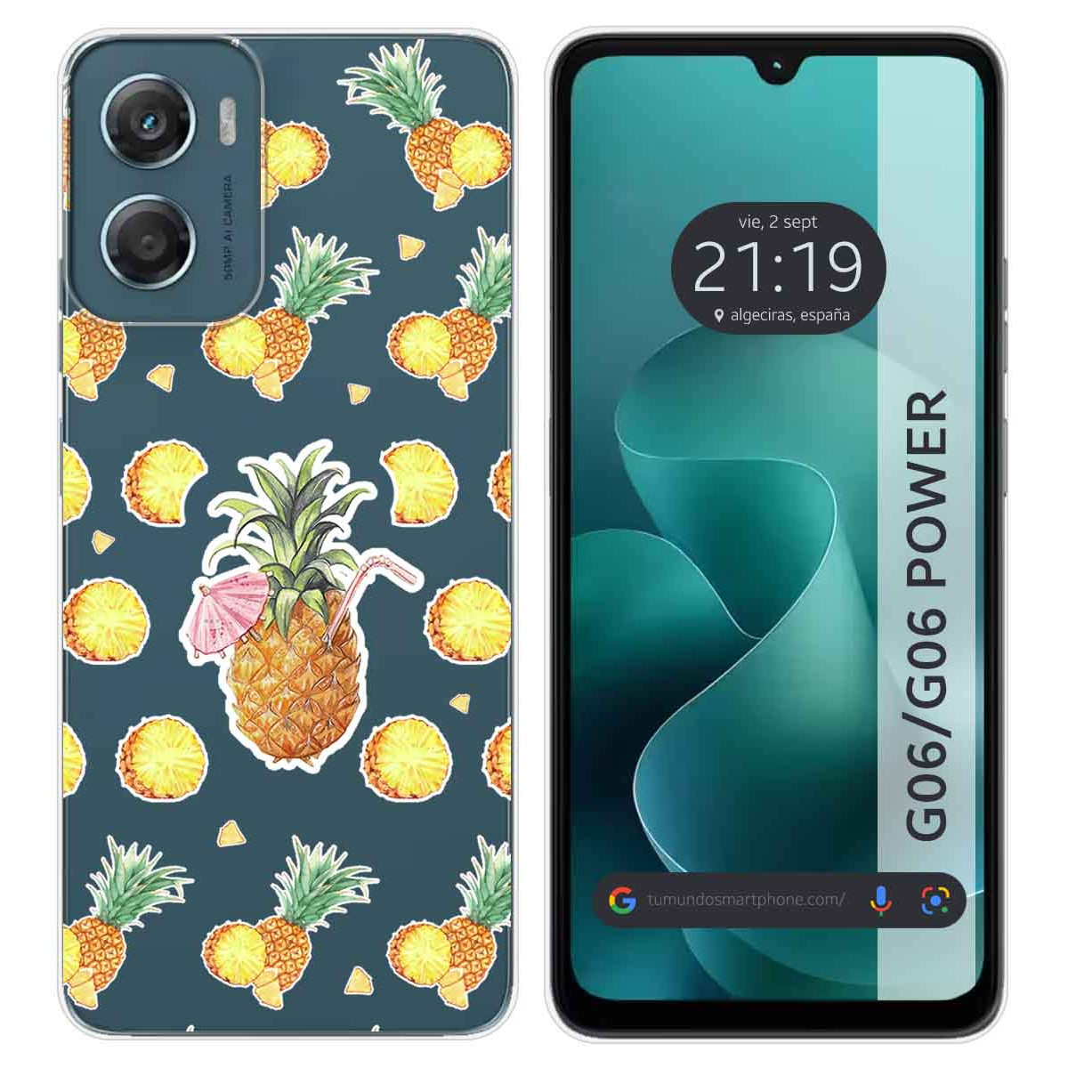Funda Carcasa Protectora personalizada dibujo Piña de gel TPU 100% transparente para Motorola Moto G06 / G06 Power 4G.