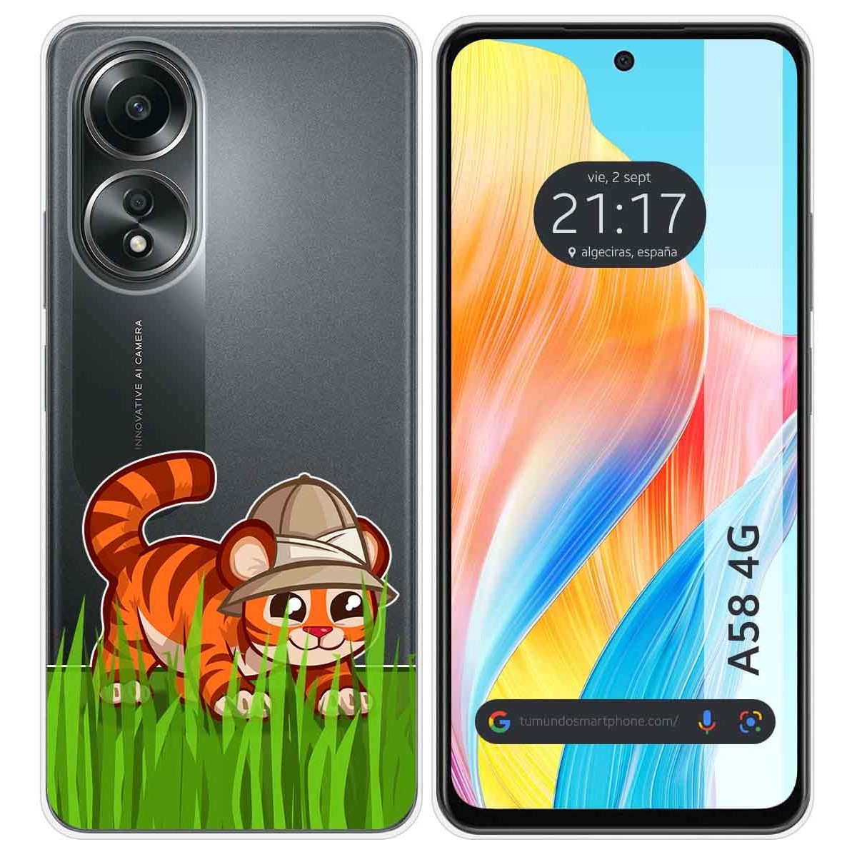Funda Carcasa Protectora personalizada dibujo Tigre de gel TPU 100% transparente para Oppo A58 4G.