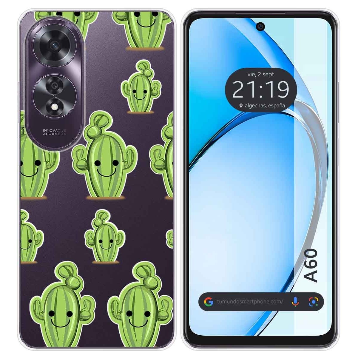 Funda Carcasa Protectora personalizada dibujo Cactus de gel TPU 100% transparente para Oppo A60 4G.