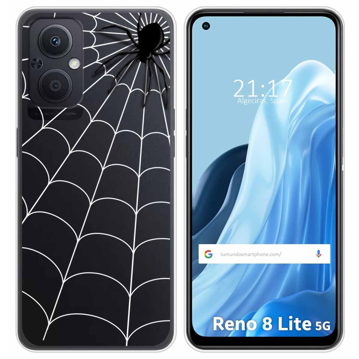 Funda Carcasa Protectora personalizada dibujo Araña de gel TPU 100% transparente para Oppo Reno 8 Lite 5G.