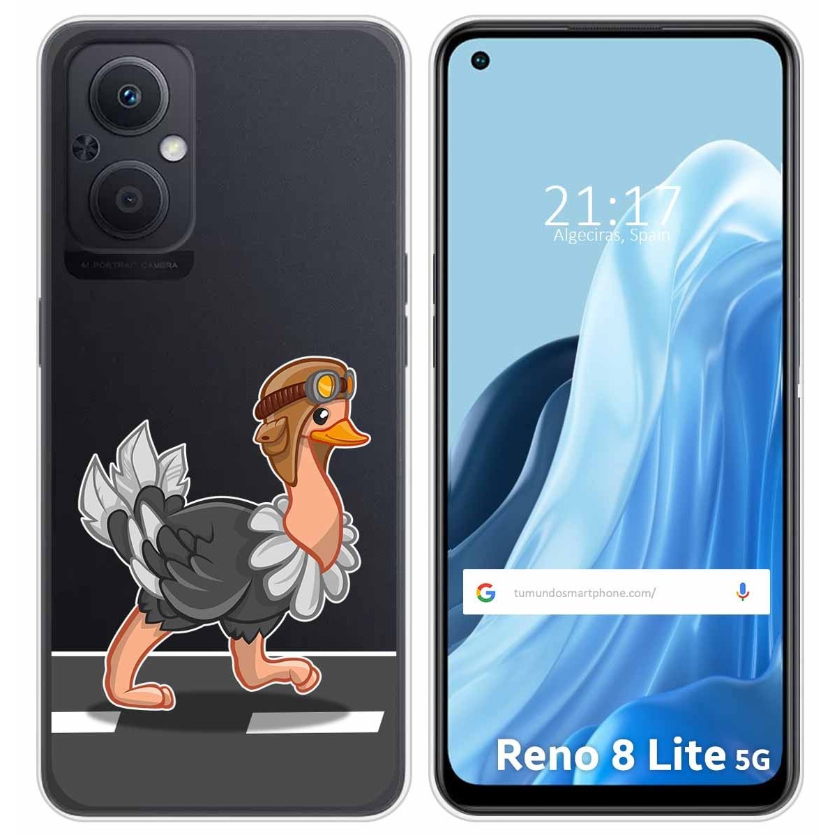 Funda Carcasa Protectora personalizada dibujo Avestruz de gel TPU 100% transparente para Oppo Reno 8 Lite 5G.