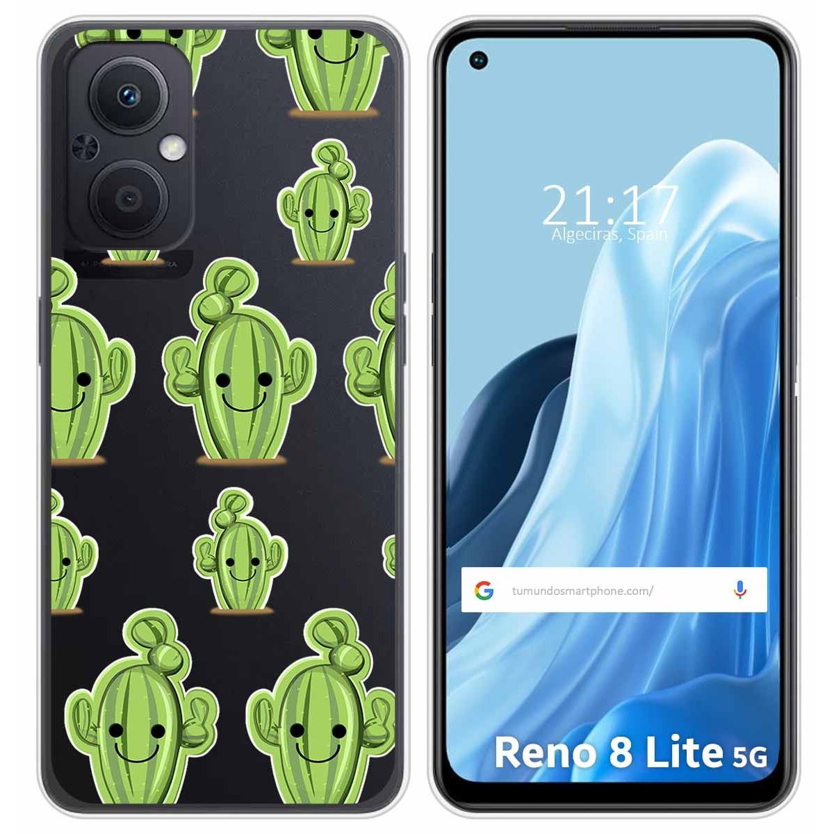 Funda Carcasa Protectora personalizada dibujo Cactus de gel TPU 100% transparente para Oppo Reno 8 Lite 5G.
