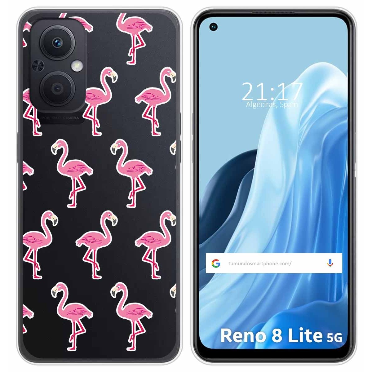 Funda Carcasa Protectora personalizada dibujo Flamenco de gel TPU 100% transparente para Oppo Reno 8 Lite 5G.