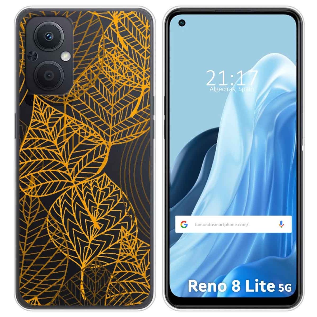 Funda Carcasa Protectora personalizada dibujo Hojas de gel TPU 100% transparente para Oppo Reno 8 Lite 5G.