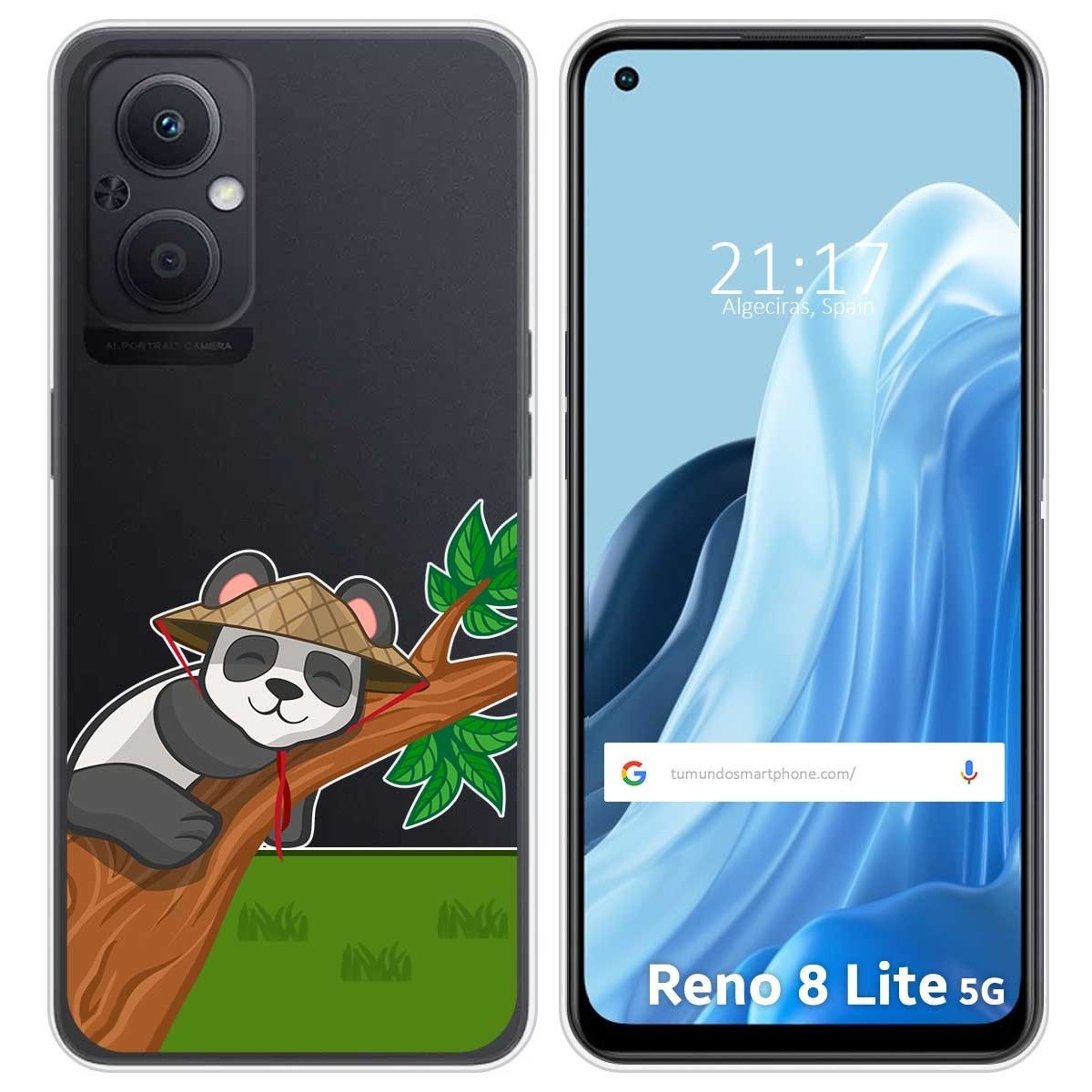 Funda Carcasa Protectora personalizada dibujo Panda de gel TPU 100% transparente para Oppo Reno 8 Lite 5G.