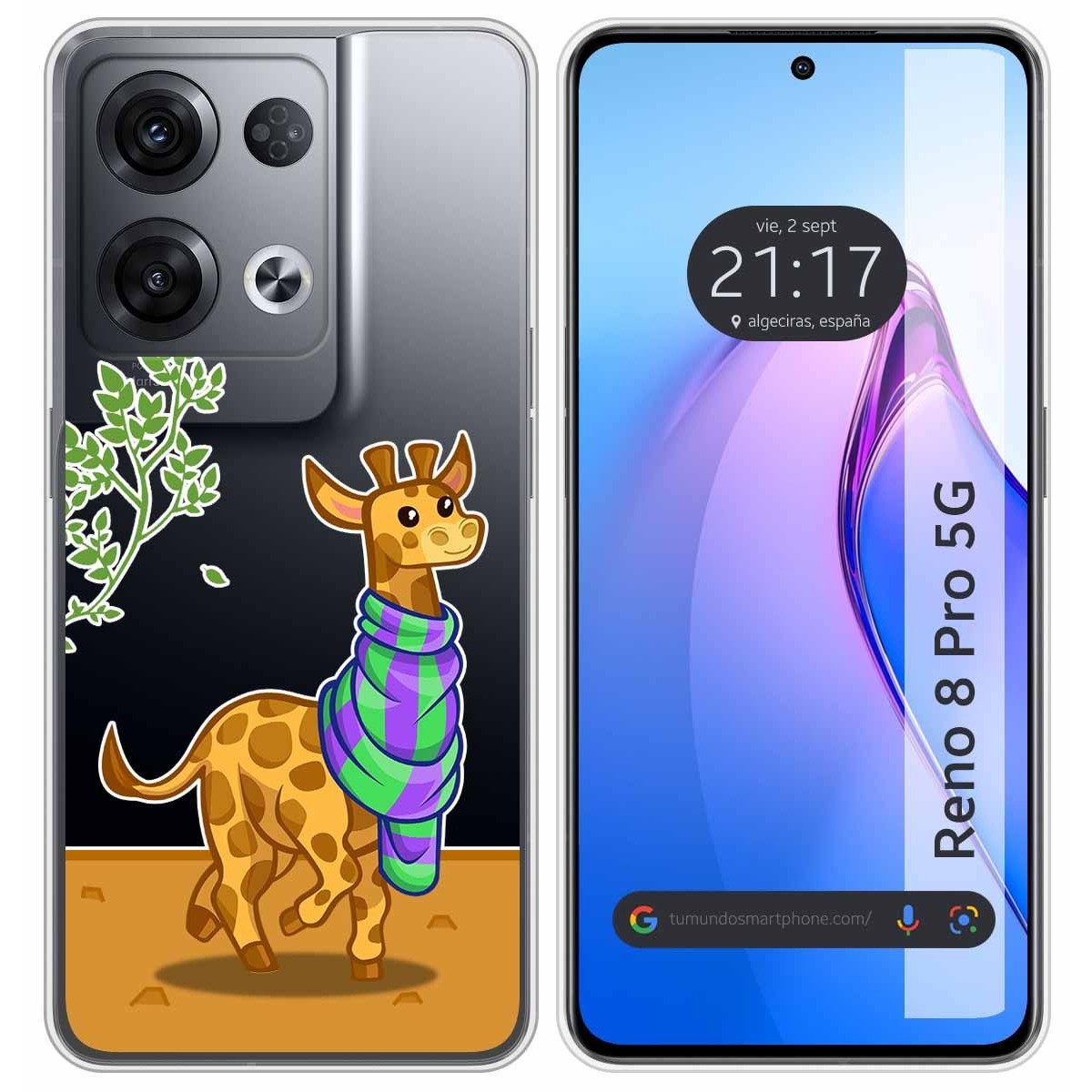 Funda Carcasa Protectora personalizada dibujo Jirafa de gel TPU 100% transparente para Oppo Reno 8 Pro 5G.
