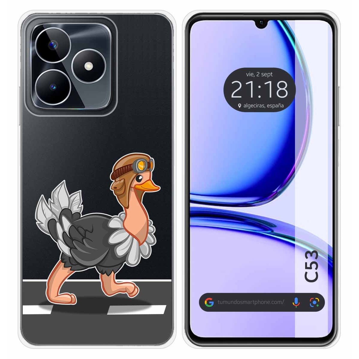 Funda Carcasa Protectora personalizada dibujo Avestruz de gel TPU 100% transparente para Realme C53.