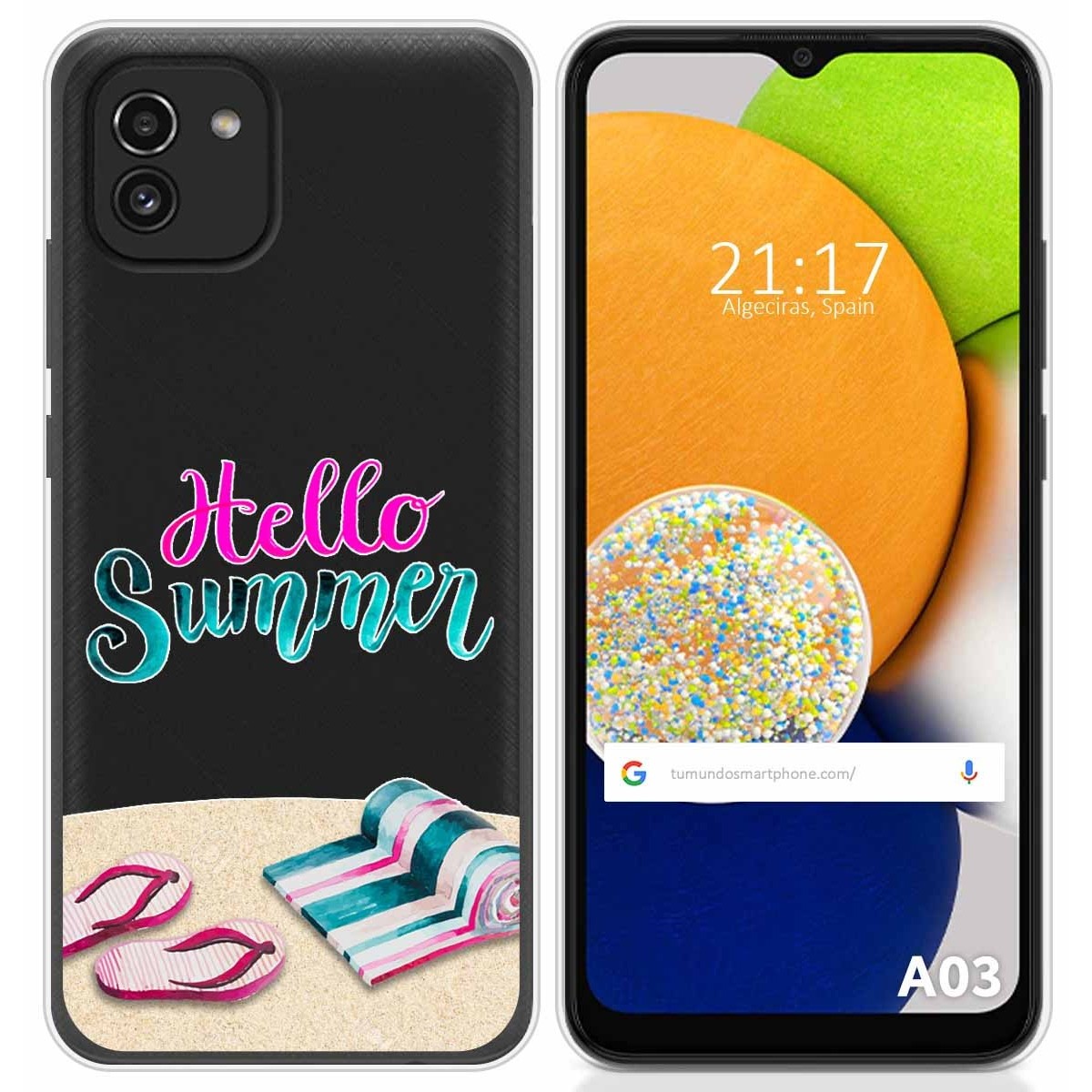 Funda Carcasa Protectora personalizada dibujo Summer de gel TPU 100% transparente para Samsung Galaxy A03.