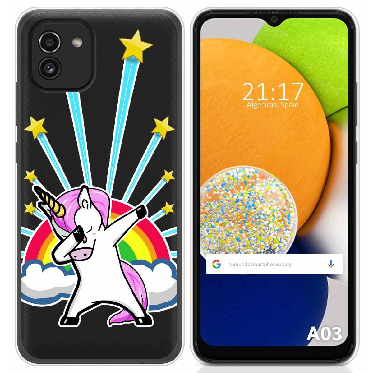 Funda Carcasa Protectora personalizada dibujo Unicornio de gel TPU 100% transparente para Samsung Galaxy A03.