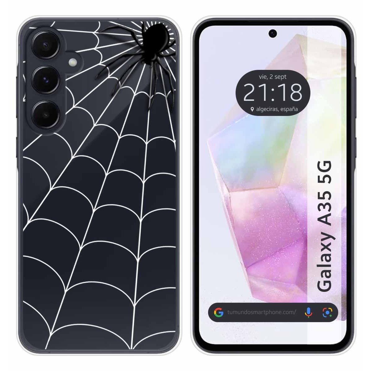 Funda Carcasa Protectora personalizada dibujo Araña de gel TPU 100% transparente para Samsung Galaxy A35 5G.
