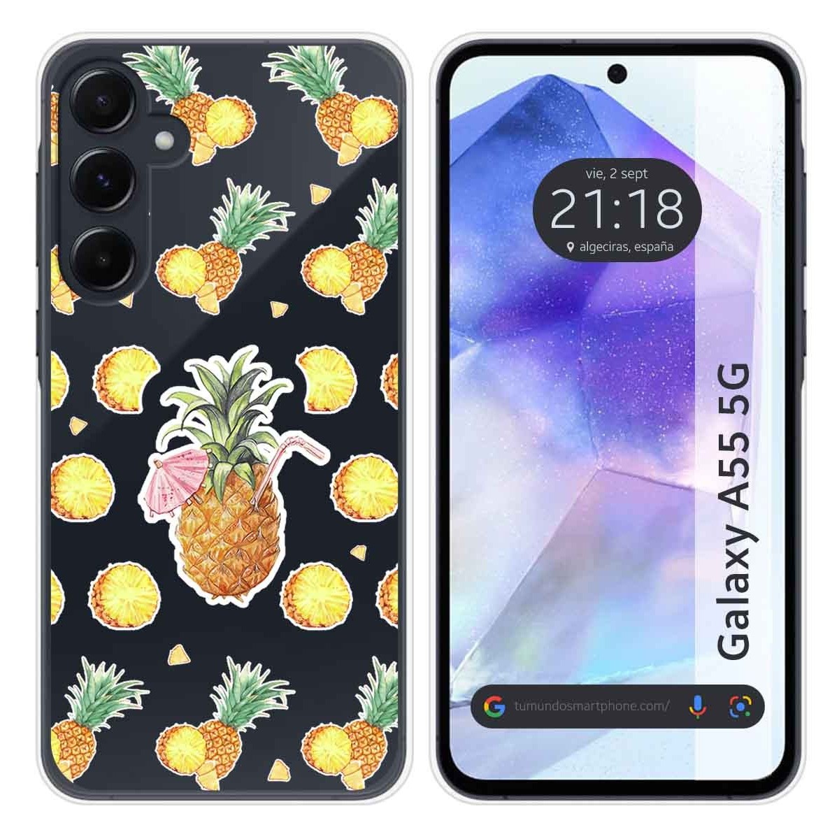 Funda Carcasa Protectora personalizada dibujo Piña de gel TPU 100% transparente para Samsung Galaxy A55 5G.