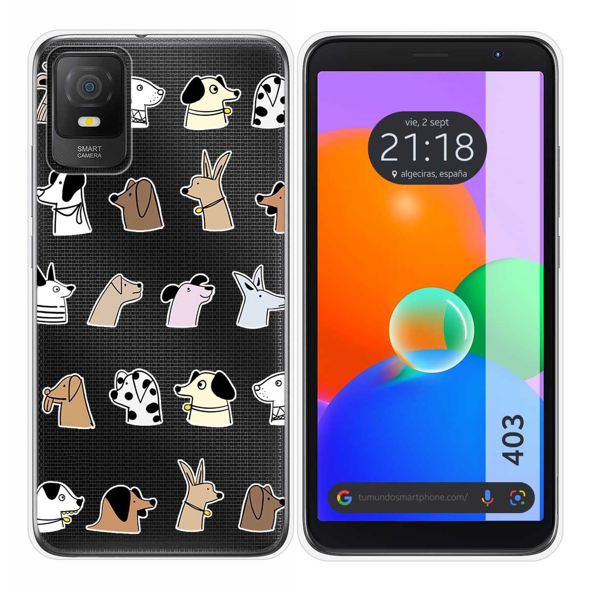 Funda Carcasa de Silicona Transparente personalizada dibujo Perros para TCL 403.