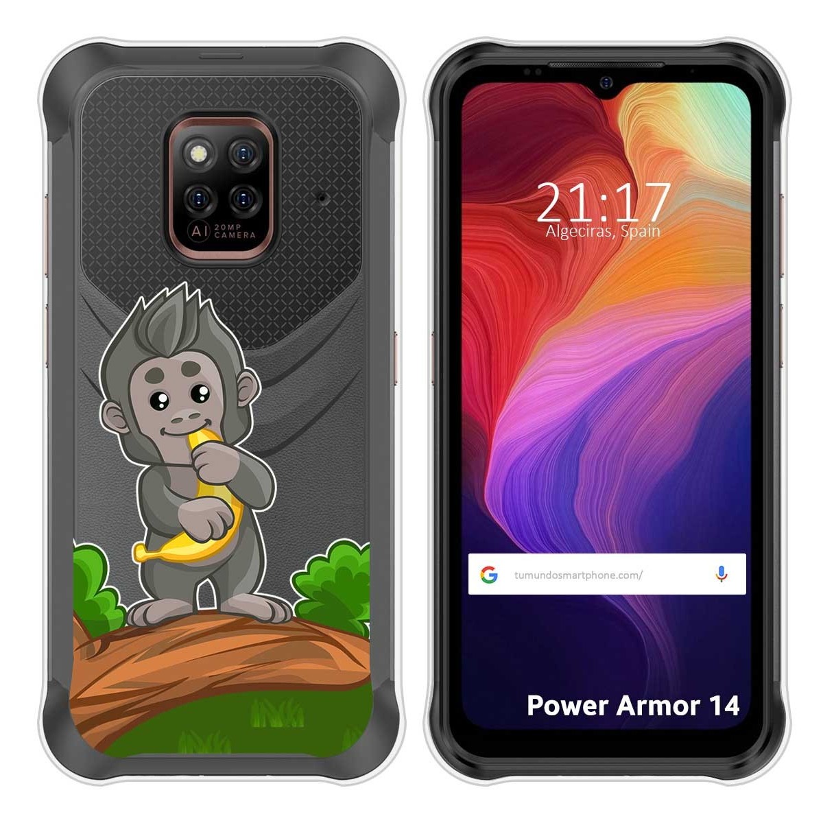 Funda Carcasa Protectora personalizada dibujo Mono de gel TPU 100% transparente para Ulefone Power Armor 14 / 14 Pro.