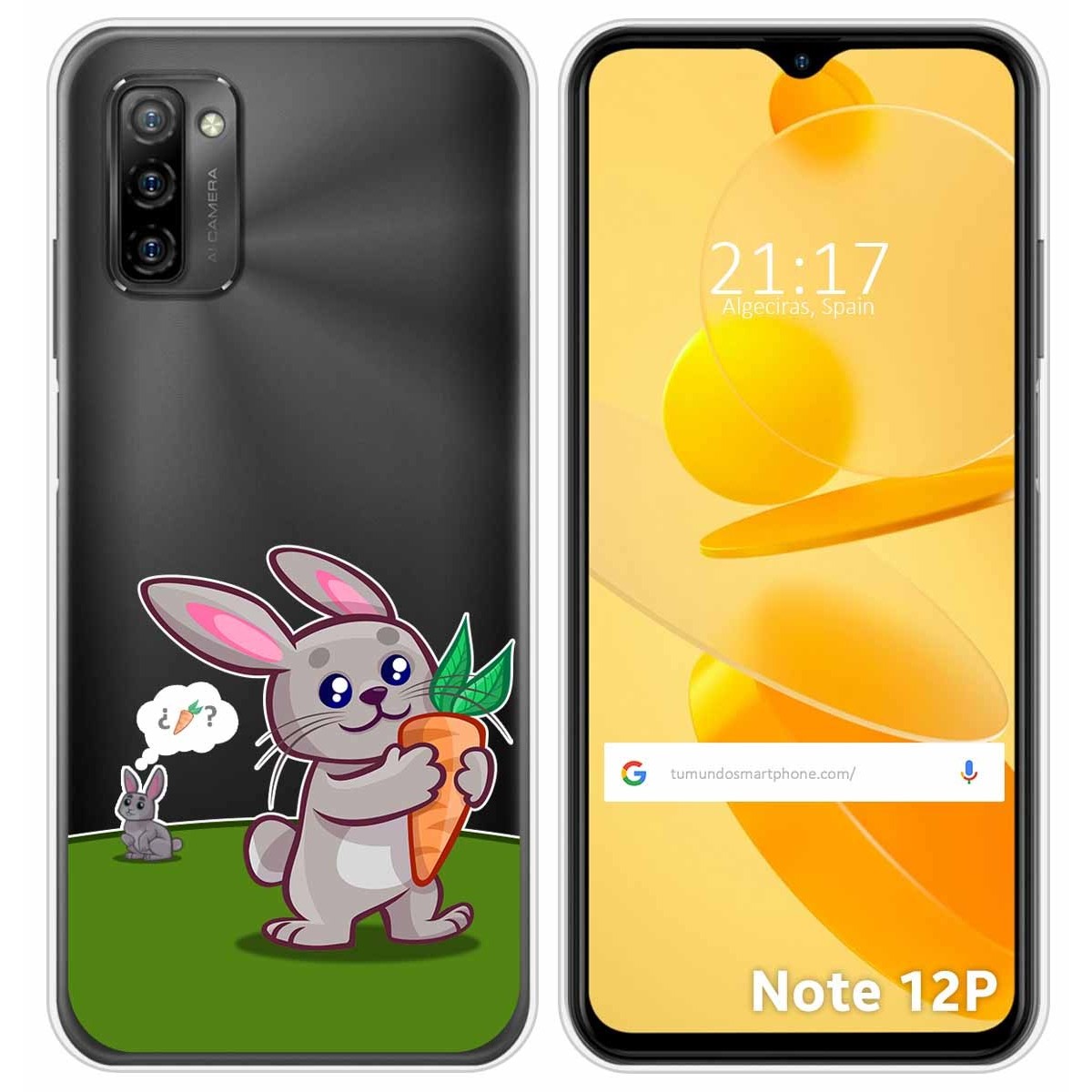 Funda Carcasa Protectora personalizada dibujo Conejo de gel TPU 100% transparente para Ulefone Note 12P.