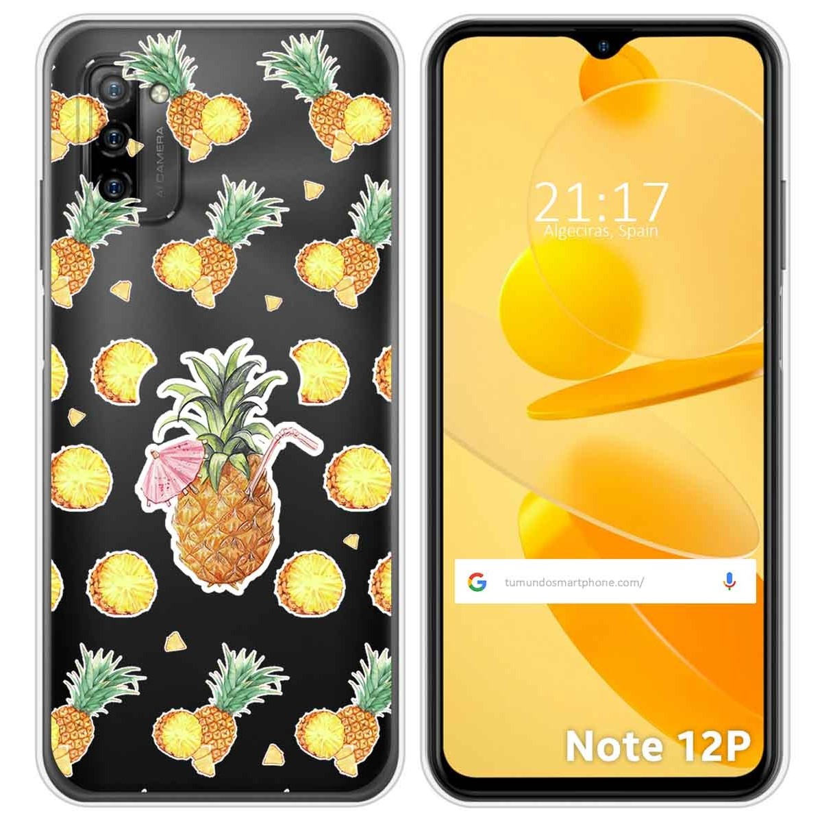 Funda Carcasa Protectora personalizada dibujo Piña de gel TPU 100% transparente para Ulefone Note 12P.
