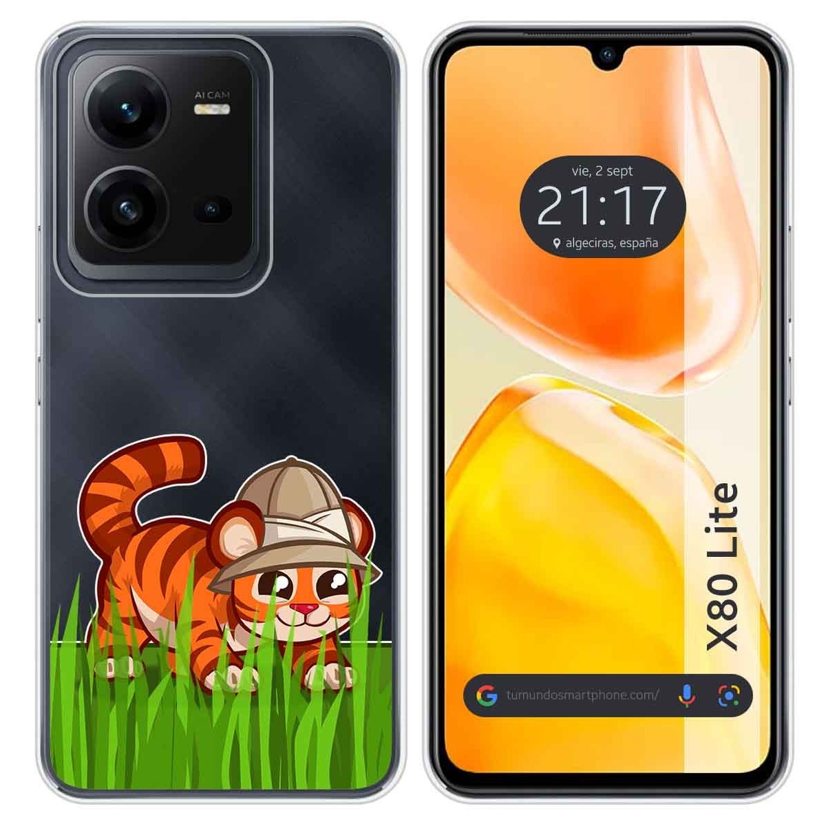 Funda Silicona Transparente para Vivo X80 Lite 5G diseño Tigre Dibujos