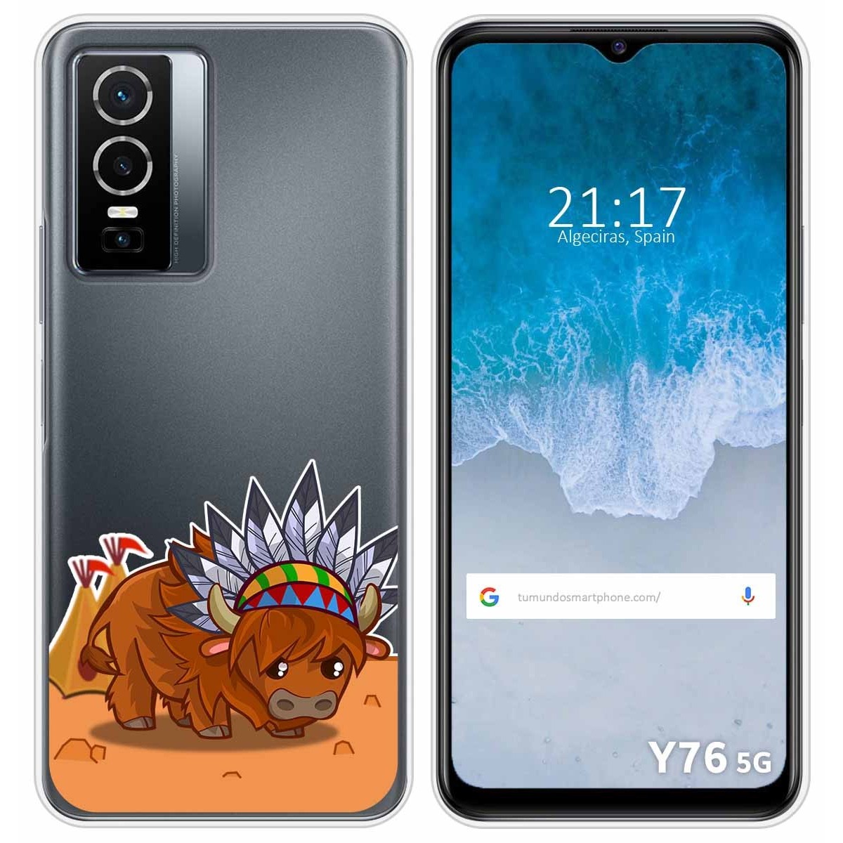 Funda Carcasa Protectora personalizada dibujo Bufalo de gel TPU 100% transparente para Vivo Y76 5G.
