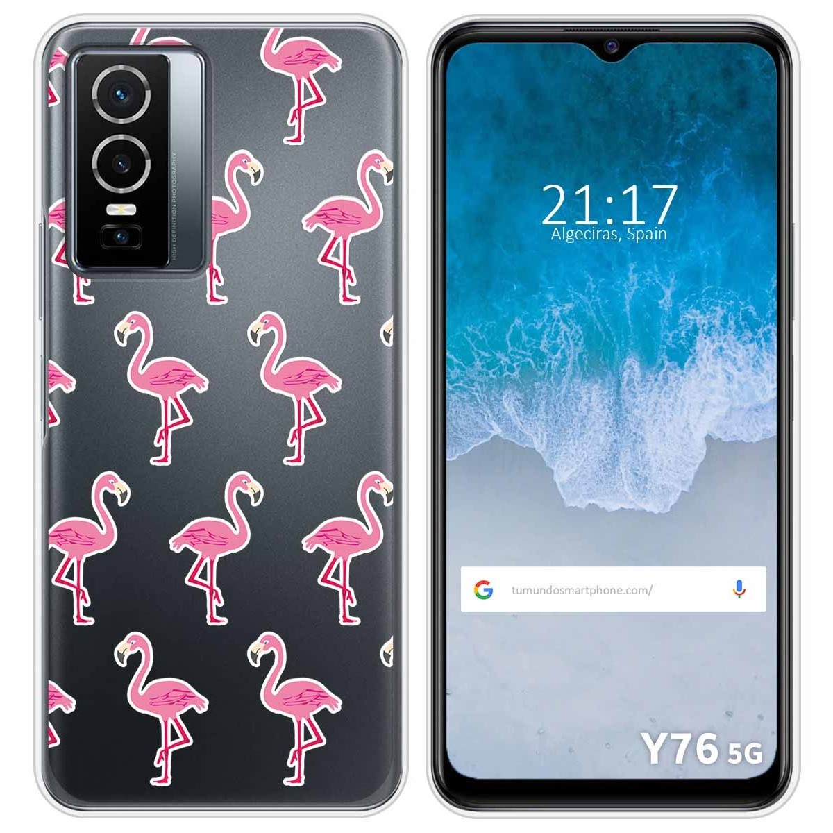 Funda Carcasa Protectora personalizada dibujo Flamenco de gel TPU 100% transparente para Vivo Y76 5G.