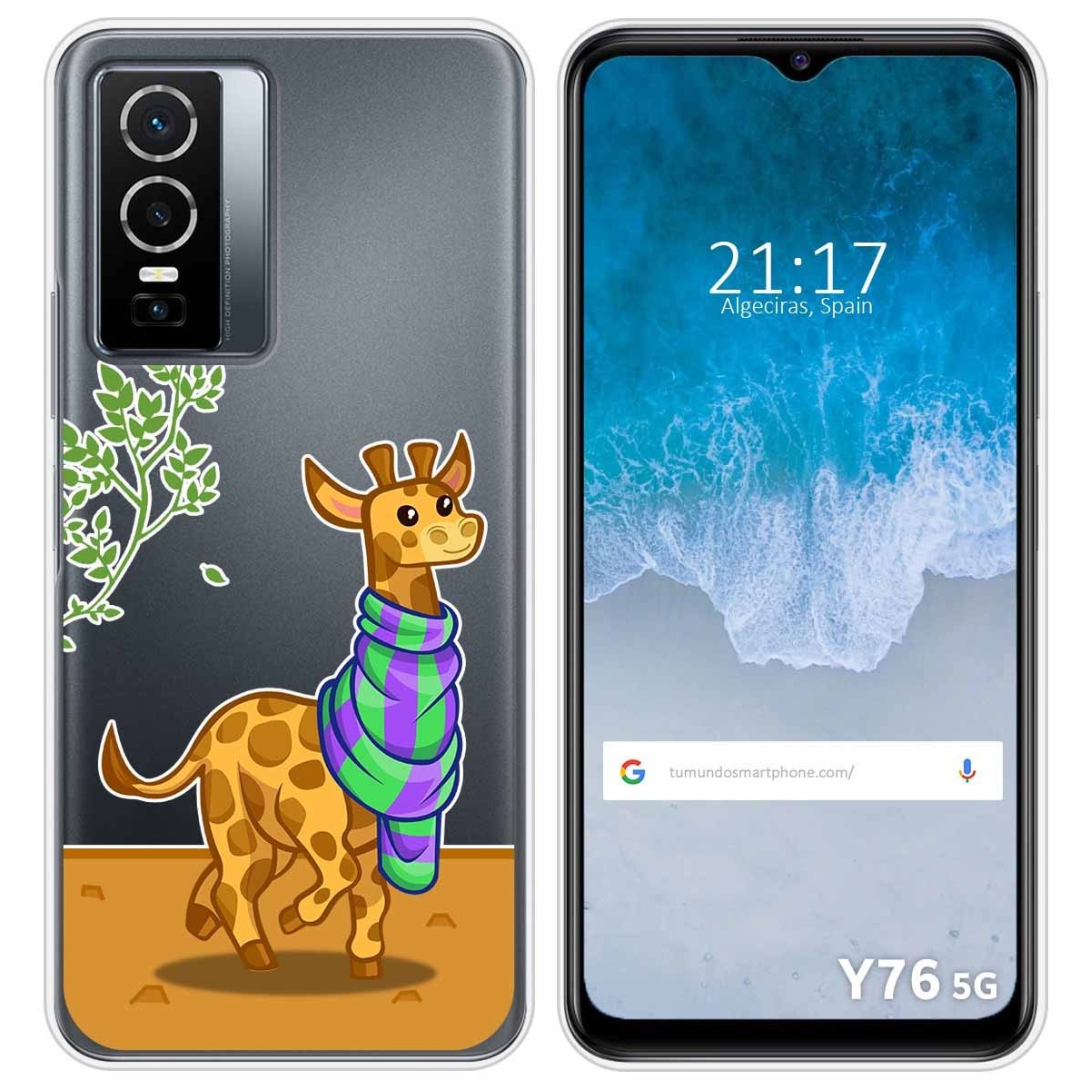 Funda Carcasa Protectora personalizada dibujo Jirafa de gel TPU 100% transparente para Vivo Y76 5G.