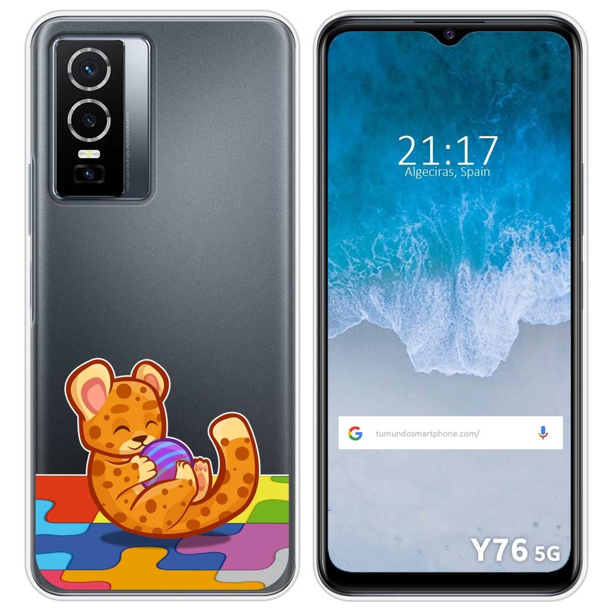 Funda Carcasa Protectora personalizada dibujo Leopardo de gel TPU 100% transparente para Vivo Y76 5G.