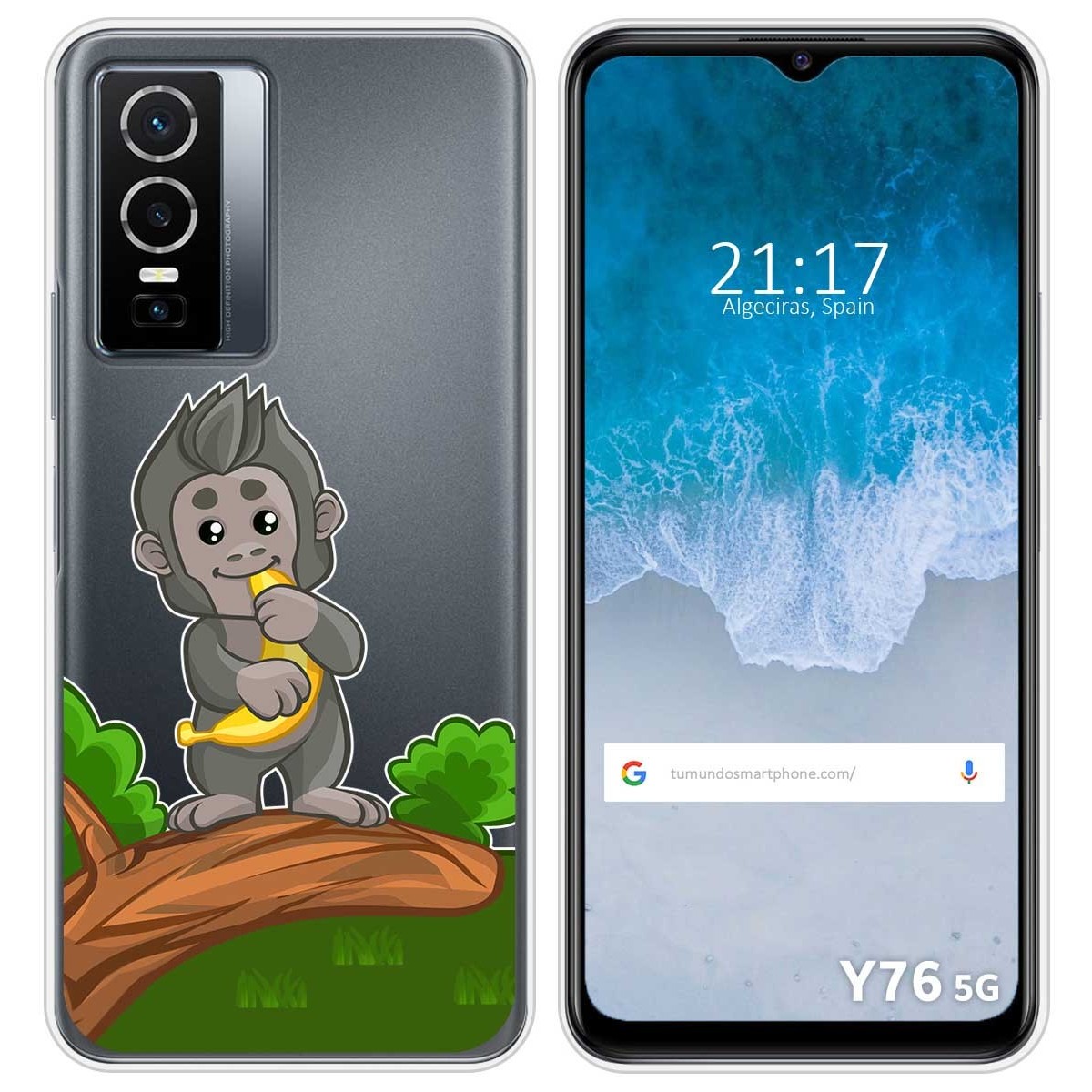 Funda Carcasa Protectora personalizada dibujo Mono de gel TPU 100% transparente para Vivo Y76 5G.