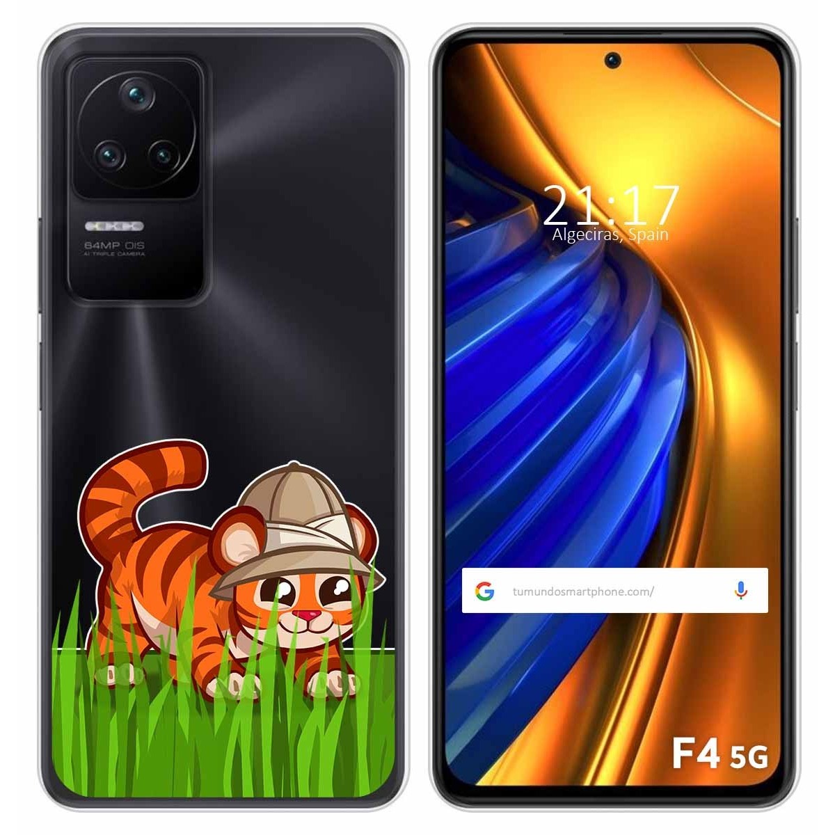 Funda Carcasa Protectora personalizada dibujo Tigre de gel TPU 100% transparente para Xiaomi Poco F4 5G.