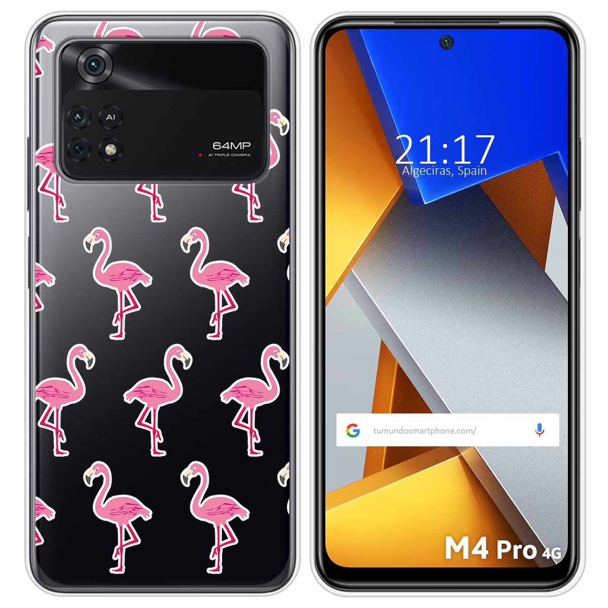 Funda Carcasa Protectora personalizada dibujo Flamenco de gel TPU 100% transparente para Xiaomi POCO M4 Pro 4G.