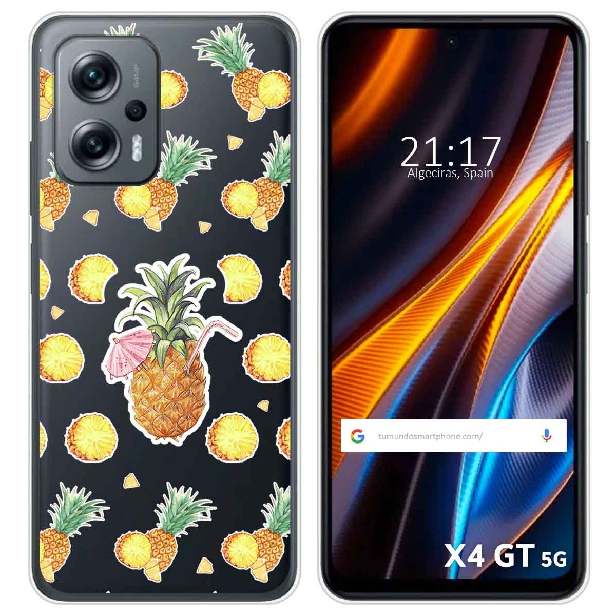 Funda Carcasa Protectora personalizada dibujo Piña de gel TPU 100% transparente para Xiaomi Poco X4 GT 5G.