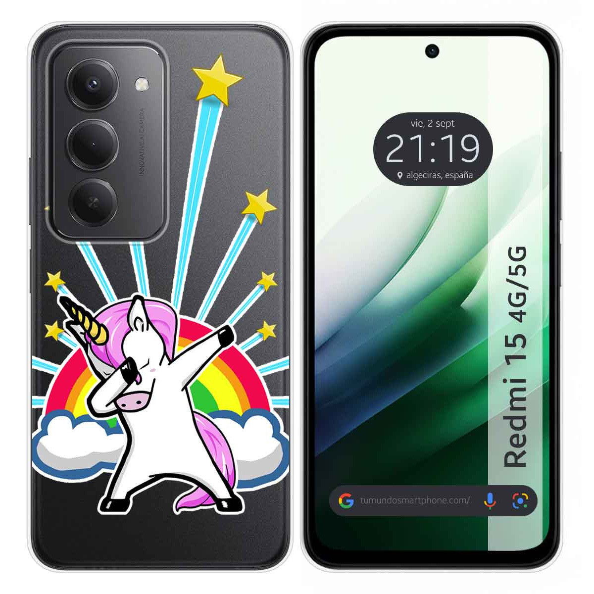 Funda Carcasa Protectora personalizada dibujo Unicornio de gel TPU 100% transparente para Xiaomi Redmi 15 4G / 5G.