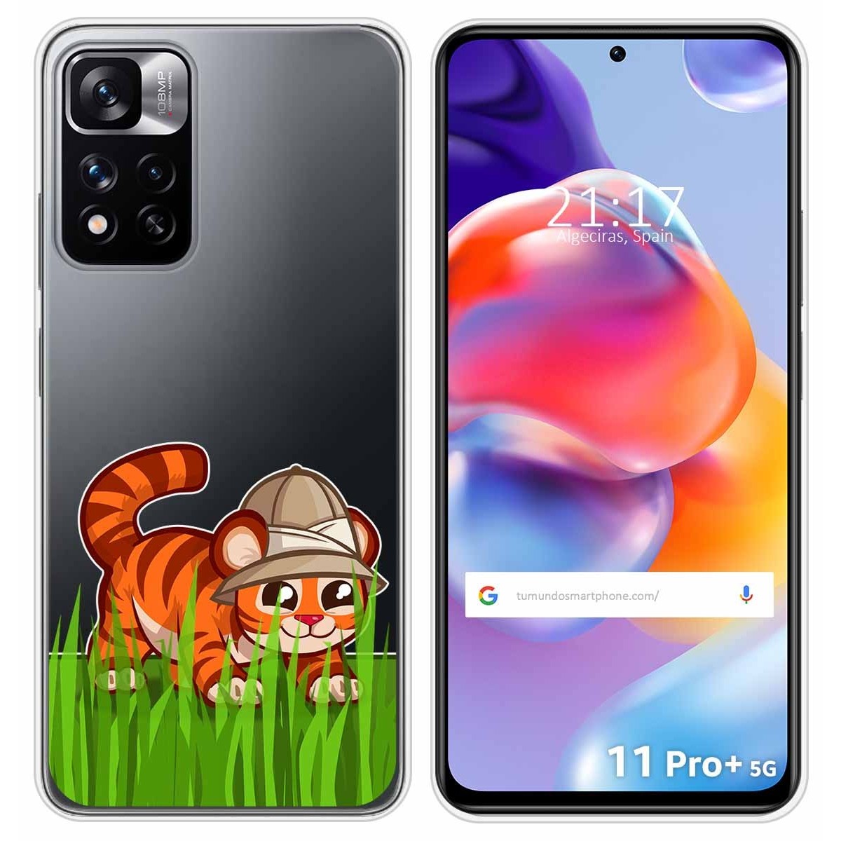 Funda Carcasa Protectora personalizada dibujo Tigre de gel TPU 100% transparente para Xiaomi Redmi Note 11 Pro+ Plus 5G.