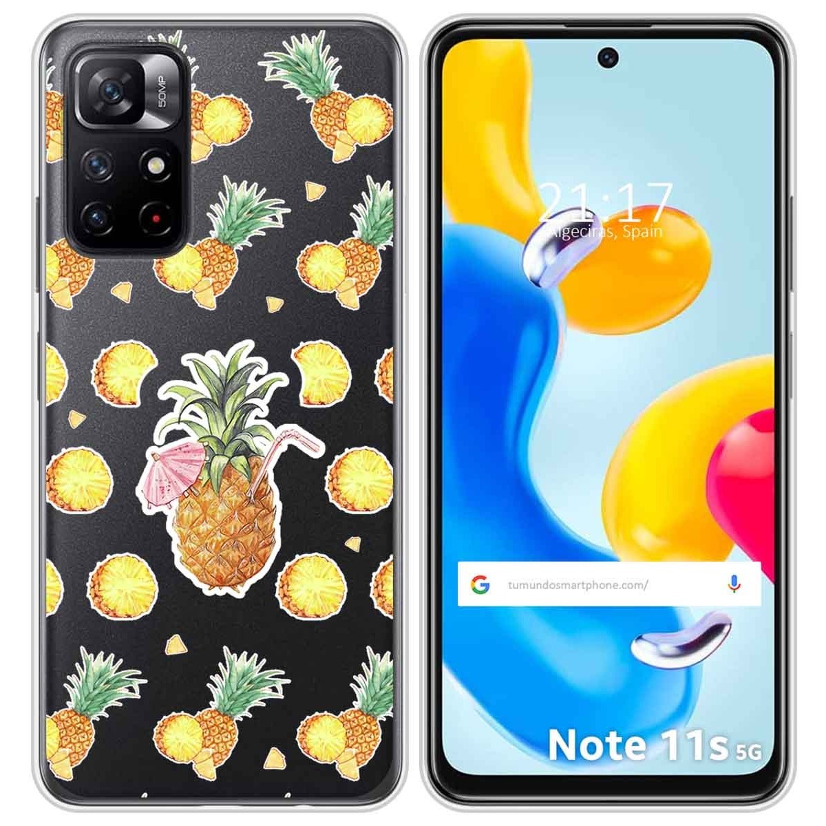 Funda Carcasa Protectora personalizada dibujo Piña de gel TPU 100% transparente para Xiaomi Redmi Note 11s 5G.