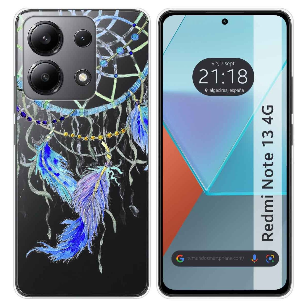 Funda Silicona Transparente para Xiaomi Redmi Note 13 4G diseño Plumas Dibujos