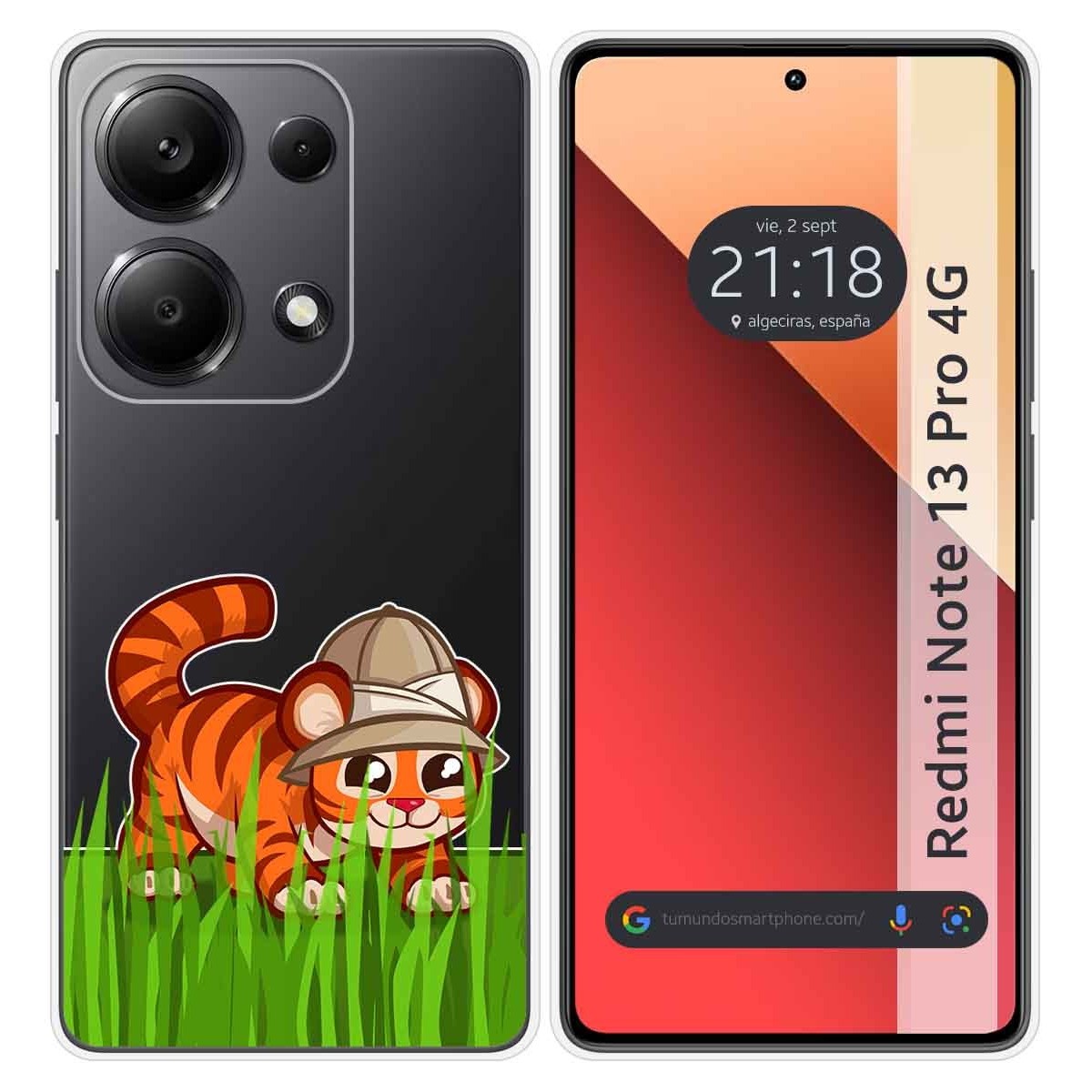 Funda Carcasa Protectora personalizada dibujo Tigre de gel TPU 100% transparente para Xiaomi Redmi Note 13 Pro 4G.