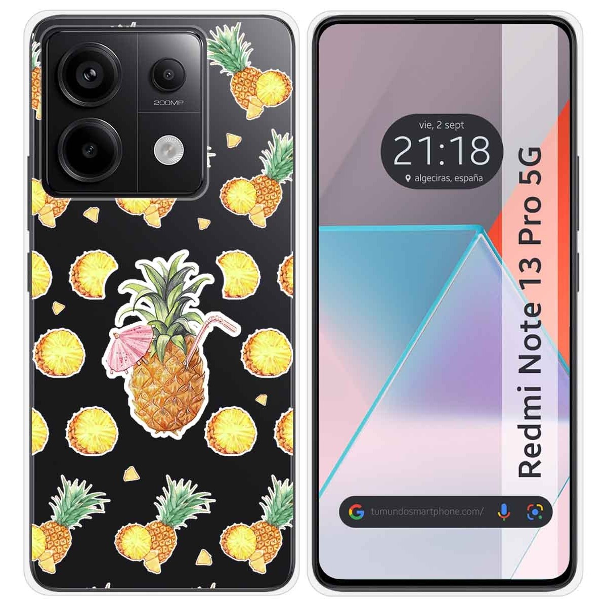 Funda Carcasa Protectora personalizada dibujo Piña de gel TPU 100% transparente para Xiaomi Redmi Note 13 Pro 5G.