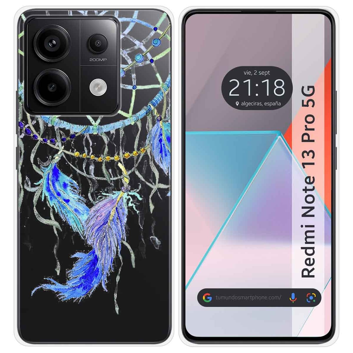 Funda Silicona Transparente para Xiaomi Redmi Note 13 Pro 5G diseño Plumas Dibujos
