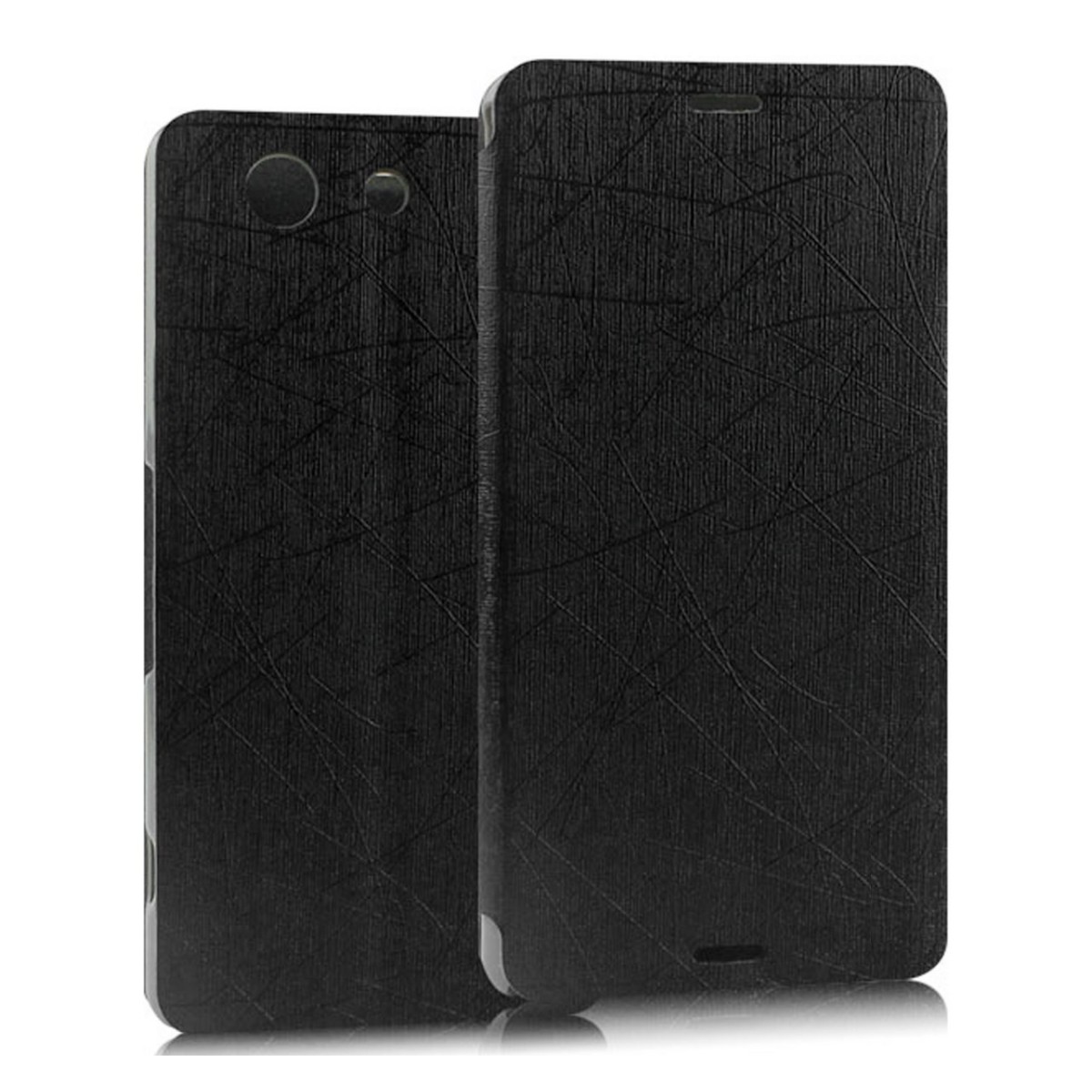 Funda Soporte Piel Texturizada Negra para Sony Xperia Z3 Compact