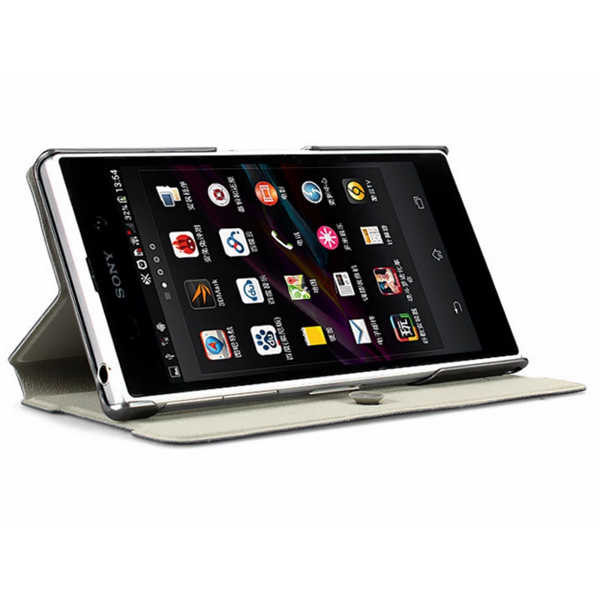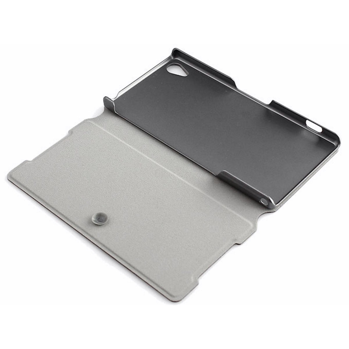 Esta funda posee una ventosa, por lo que es mucho más comodo cerrar la tapa. En su interior también posee un molde de policarbonato en el cual encaja a la perfección el terminal, ya que está diseñado exclusivamente para él y se adapta perfectamente al movil sin interrumpir ninguna función ni botón (altavoz, microfono, botones, etc).