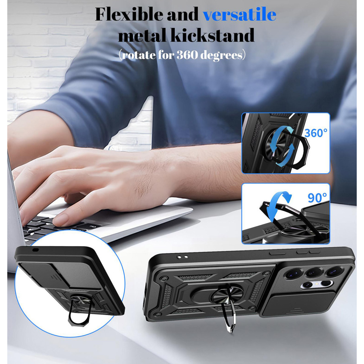 Esta innovadora funda posee un anillo de metal integrado en la funda, este se puede girar 360º y puede ajustarse a cualquier ángulo que necesite. Esta es una funda muy resistente, que protegerá tu terminal contra golpes y arañazos durante largo tiempo.