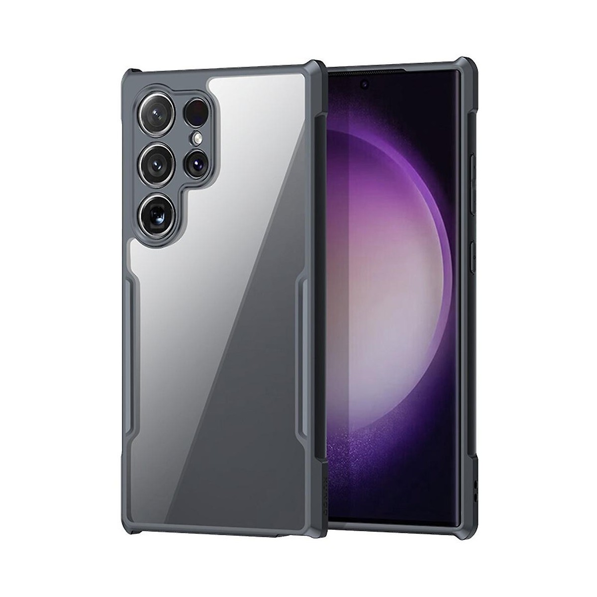 Funda Protectora de policarbonato transparente con borde de silicona negro para Samsung Galaxy S24 Ultra 5G, diseñada para proporcionar la máxima protección al dispositivo manteniendo parcialmente su estética original.
