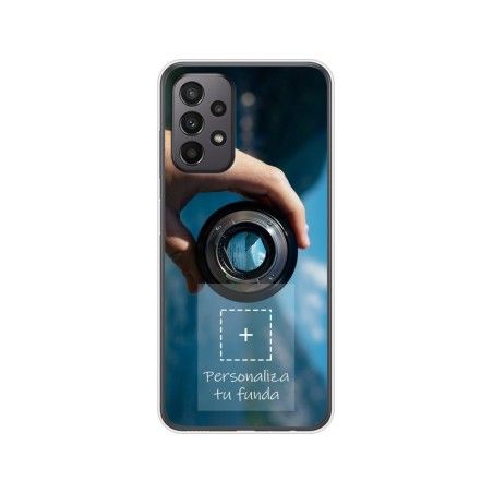 Personaliza tu Funda Gel Silicona TPU Termoplástico 100% transparente, para Samsung Galaxy A23 5G, con tu fotografía o dibujo. No es necesario imprimir toda la parte trasera de la funda, puedes imprimir un logo, un sticker, tu personaje favorito.